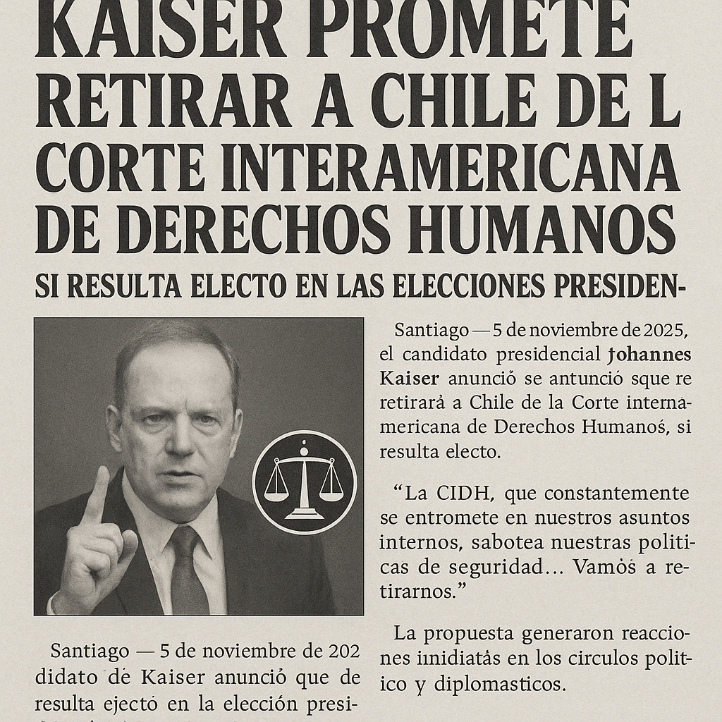 Santiago — 5 de noviembre de 2025. En un giro de fuerte impacto en el escenario de la campaña presidencial, el candidato libertario Johannes Kaiser anunció que, de resultar elegido,…